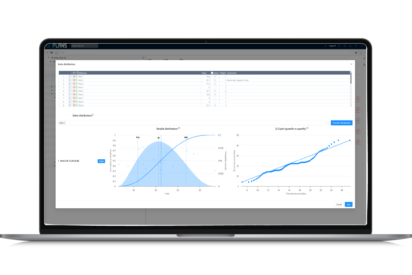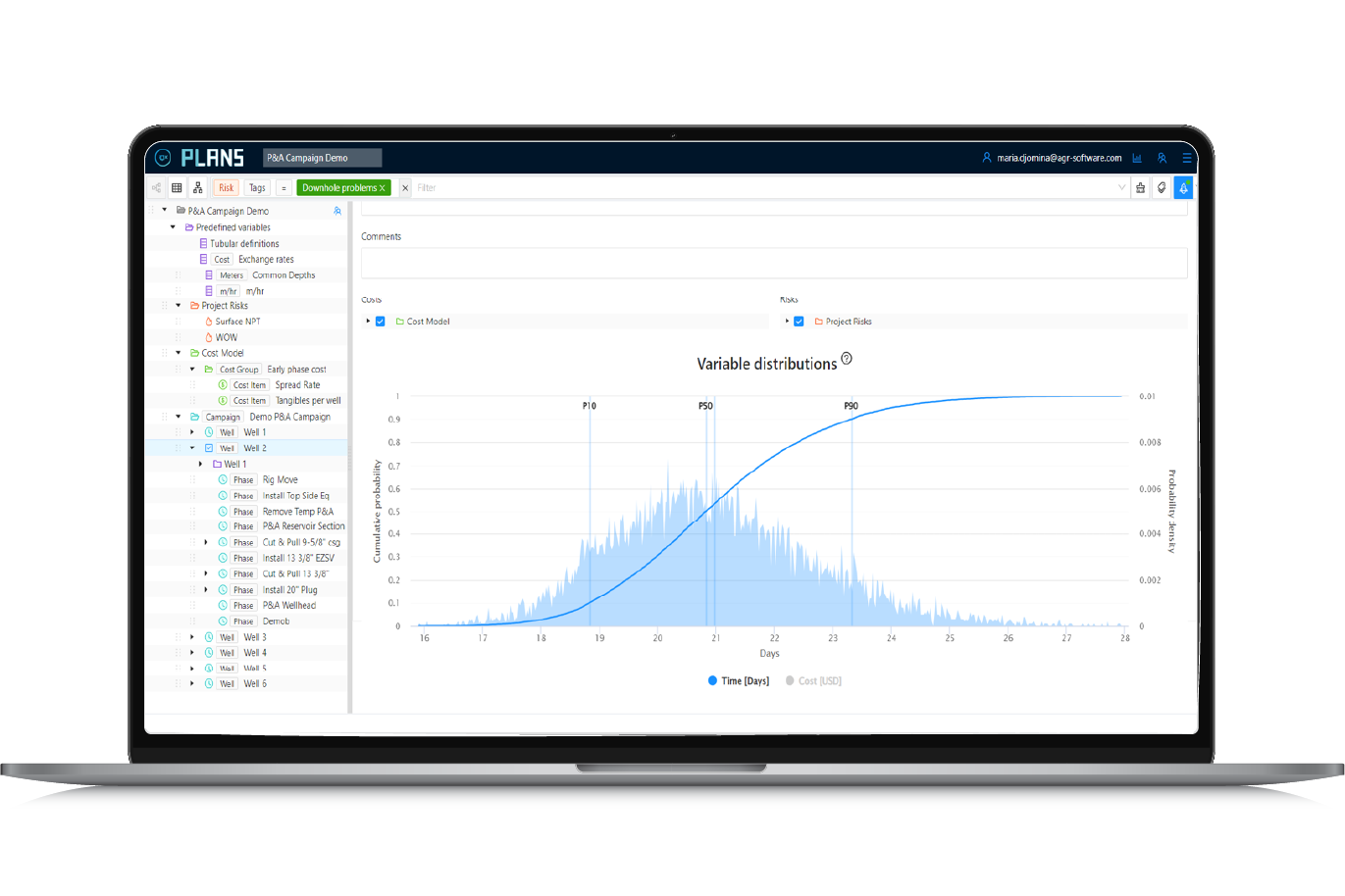 iQx™ PLANS™ uses probabilistic modelling to convert historical well and user-specific well data into a range of time, cost, and risk outcomes. By simulating scenarios 10,000 times, PLANS™ equips decision-makers with deeper insights, boosting well planning productivity, budget accuracy, and minimising scheduling uncertainty.